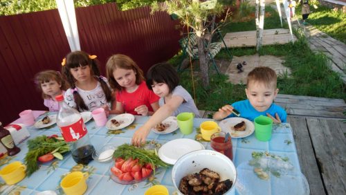 День первый) дорогу дети и взрослые перенесли легко — малыши спали, старшие любовались красотами природы за окном, взрослые пытались накормить тех, кто не спит))) Добрались до гостевого дома, разместились, покормили тех, кто проснулся и еще раз тех, кто не спал) после семичасовой дороги дети улеглись отдыхать, взрослые разбирали вещи, готовили праздничный ужин…и конечно, был шашлык — наш Дмитрий Викторович знает секрет) мясо всегда получается мягким и сочным) вечером малышня возилась в песочнице, все наелись вкуснющего мяса)